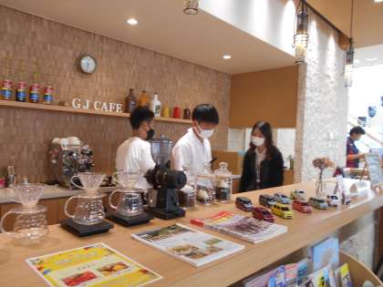 今日はカフェのブースでお客様にドリンクの注文を聞いたり片付けをしたりしました。また、その合間に週末に行われるイベントの準備をしました。