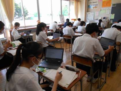 国語の授業では、俳句の鑑賞文発表会があり、各自、発表文の仕上げをしてから臨みました。