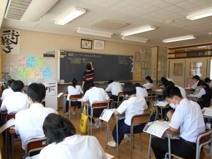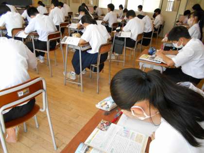 社会の授業では、3つのキーワードから現代社会の特色を捉えることに取り組んでおり、今日は「少子高齢化」について考えました。
