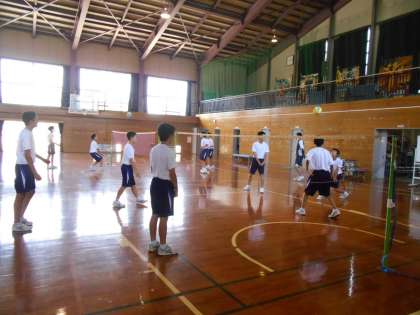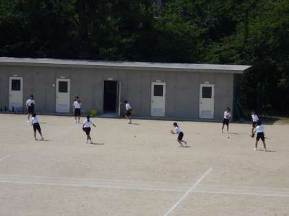 保健体育の授業では、男子はバレーボール、女子はソフトボールに取り組みました。元気いっぱいでした。