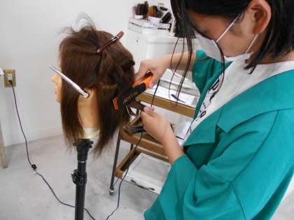 マネキンを使って、カットやヘアセットを行いました。5日間かけて、より美しく仕上げることができました。