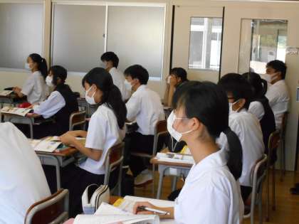英語の授業では、「It's〜for 人 to〜.」という表現について、2年生での学習を基に勉強しました。