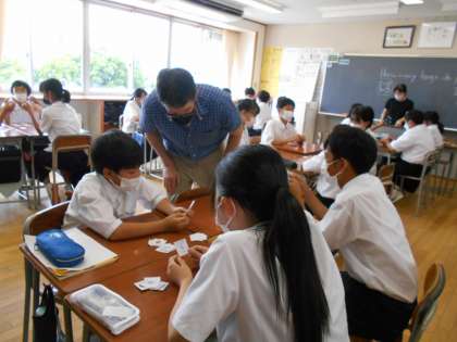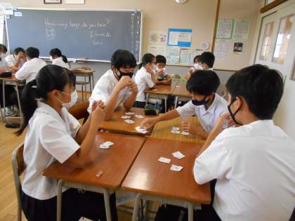 英語の授業では、「How many 〜s do you have?」という表現を使って、ゲームに取り組みながら勉強しました。