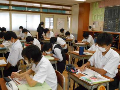 理科の授業では、植物が呼吸しているかどうかをどうやって調べるか、その方法を考えているクラスもありました。