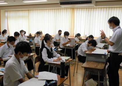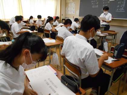 数学の授業では、過去の高校入試問題から、これだけはできるようになろうという問題を集めたプリントが配布されていました。