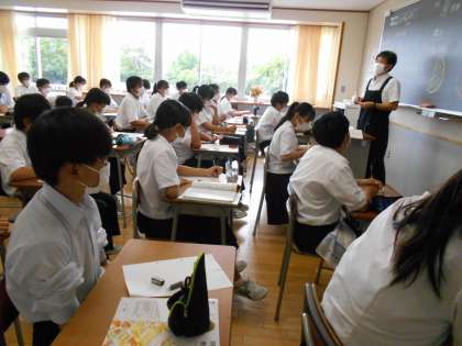家庭科の授業では、加工食品に表示されている内容から分かることについて考えました。
