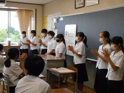 学活では、2学期に行われる合唱コンクールの指揮者、伴奏者、パートリーダーが決まり紹介されるとともに、各自の抱負をみんなの前で伝えました。クラスのみんなからは、温かい拍手がありました。