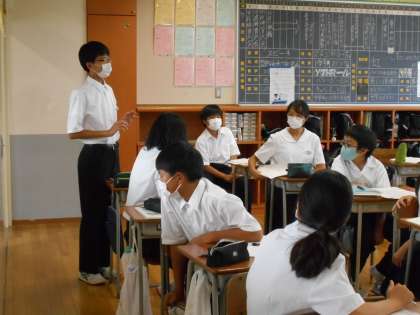 学活の時間にミニ学級会をしているクラスがあり、自分の意見を堂々と伝える姿勢、また、その意見をからだをしっかり発表者に向けて聞いたり、メモを取ったりしていることに感心しました。