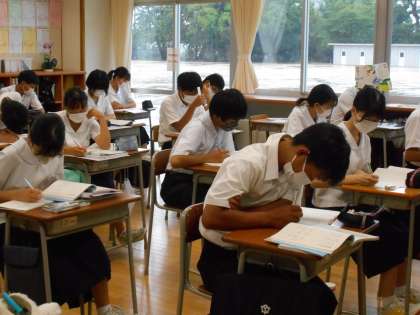 国語の授業では、情景を想像しながら短歌を読むことに取り組んでおり、日の光に明るさやのどかさを感じたとか、緑や白という色に生命力や喜びを感じたという意見が出ました。
