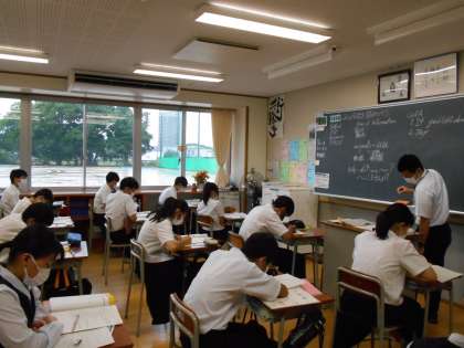 英語の授業では、2人の対話形式になっている教材を読み、内容理解に取り組んだクラスもありました。