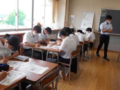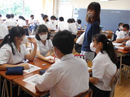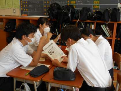 今日のNTは、1学期最後の「Newspaperで学び愛」でした。文化委員の生徒が選んでくれた「シートベルトしてる?」という記事を読んで、感じたことを話し合いました。
