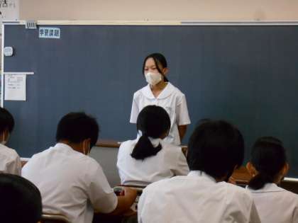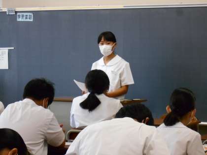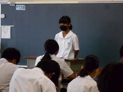 国語の授業では、自分が選んだ話題で準備したスピーチを発表しました。堂々と発表する姿や級友のスピーチに聴き入っている姿が印象的でした。