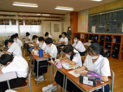 社会の授業では、奈良時代の文化の特徴について学んだことを、丁寧にノートにまとめていました。