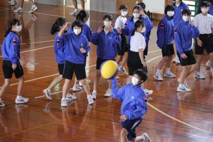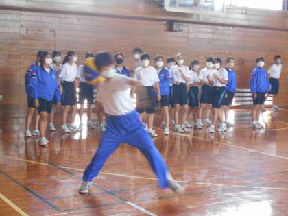 2学年の学年レクリエーションの第1種目は、ドッジボールでした。はじめはボールが1個でしたが、途中からボールが増えて、どの方向からボールが飛んでくるか分からず、気が抜けない戦いになりました。