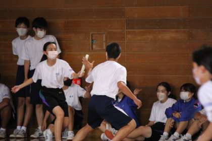 2種目目は、クラス対抗リレーでした。次々にバトンが渡され、体育館に歓声が響き渡りました。笑顔いっぱいのリレーでした。