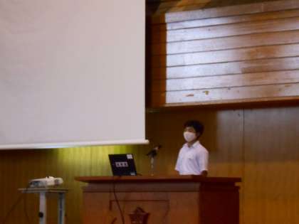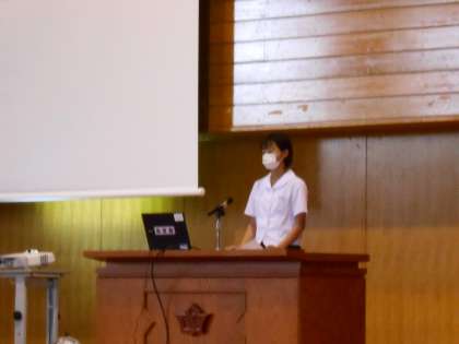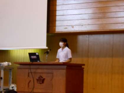 3名の生徒の堂々とした発表を、全校生徒も真剣な態度で聞いていました。
