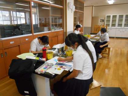 作品は油絵もあれば、アクリル絵の具もあり、各自で決めた作品を制作しています。