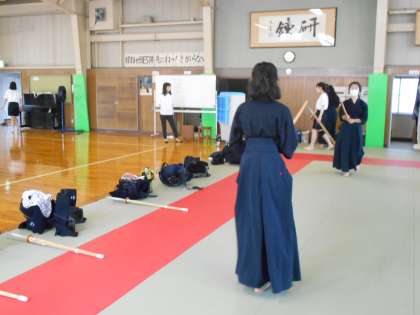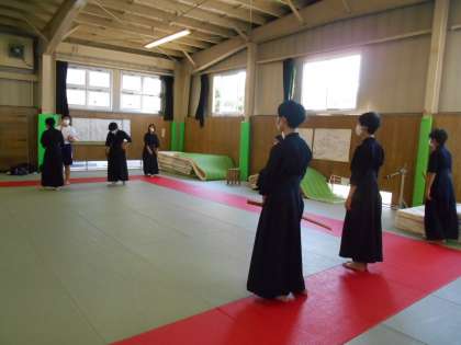 8月7日に予定されている級・段審査に向けて練習をしました。扇風機3台、冷風機1台を設置すると暑さも少し和らぐようです。