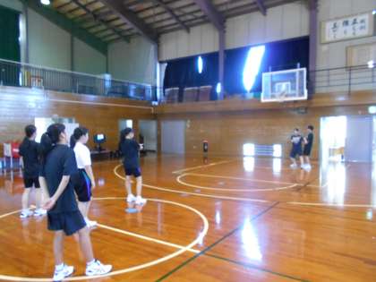 今日の体育館の最後使用は女子バスケットボール部でした。汗だくになりながらも、守備と攻撃の基本動作を繰り返し練習しました。新人戦に向けて頑張っています。