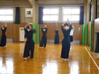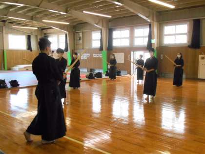 部長の号令で、素振りから始めました。剣道もやはり基礎練習が大切です。
