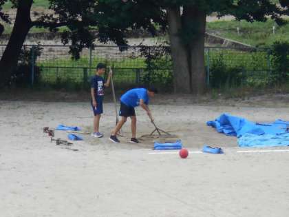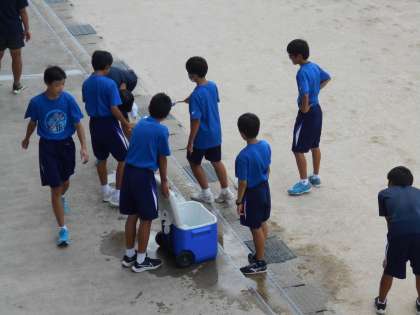 今日は昨日よりも暑い朝でした。水分補給とともに、体の熱を取りながら練習をしていました。