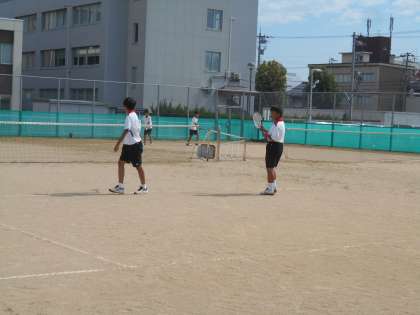 今日は他校との練習試合を南部中学校のコートで行いました。暑い中でしたが、実践練習のよい機会になりました。