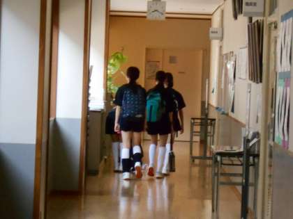バレーボール部は、体育館での活動の前に教室で集合しました。宿題の進み具合なども互いに確認したようです。