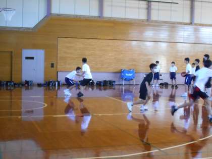 コーチの指導の下、デフェンスをかわす、また、かわせない攻守の練習をしました。