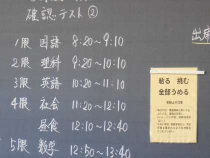 3年生は、今日の登校日に確認テストを行いました。夏休み各自が取り組んだ成果をうまく発揮できたでしょうか。