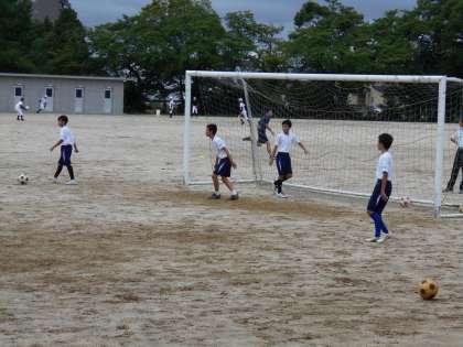 ゴールキーパーを立て、シュート練習をしていました。