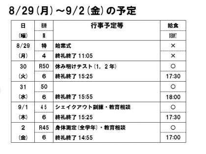 8月29日(月)〜9月2日(金)の予定