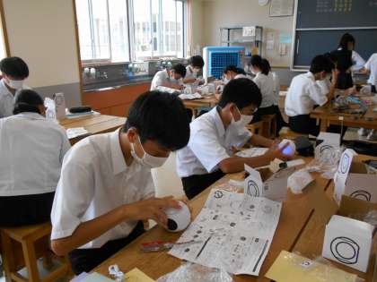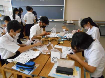 技術の授業では、部品をハンダ付けしていました。この他にも、説明書を見ながら細かな作業を進めました。