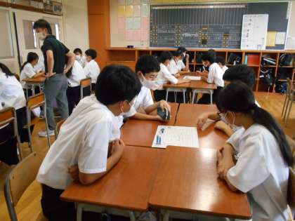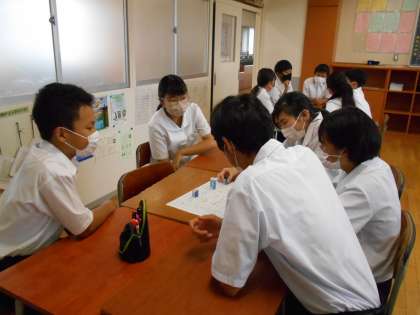 班ごとにすごろく形式で進んだ目の質問に答えながら、夏休みの出来事について伝え合いました。ゲーム感覚で楽しんでいるマスクの下の表情は、にこやかでした。
