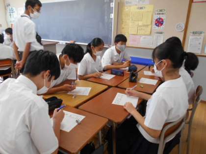 昨日、夏休み明けテストが終わった後に、「人間関係づくりプログラム」と題して、「ラッキーじゃんけん」「先生とビンゴ」をしながら、クラスの絆を深め合いました。楽しそうな笑い声が響いていました。