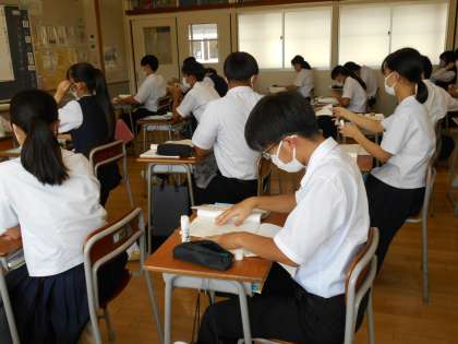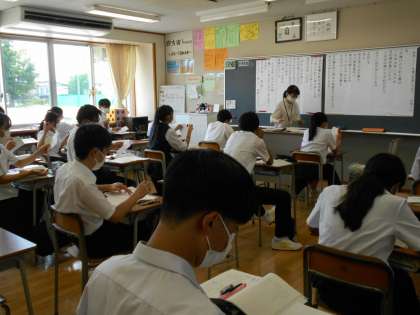 国語の授業では、「あいさつ〜原爆の写真によせて〜」という教材を読み、考えたこと、気付いたことをどんどん書き込みました。