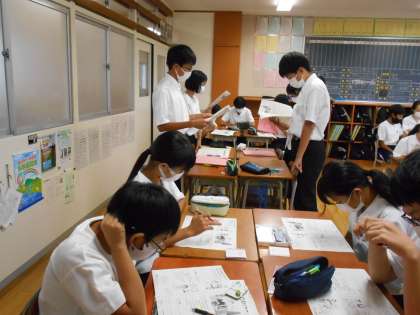 英語の授業では、本文の音読練習をした後、一番早く読めた班がその成果を発表したクラスもありました。
