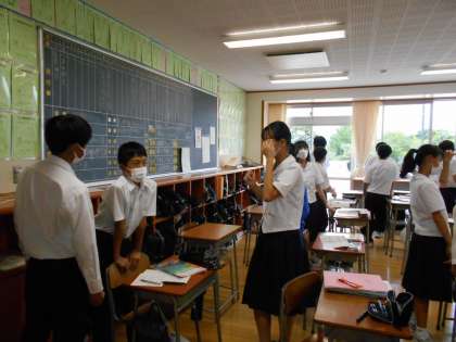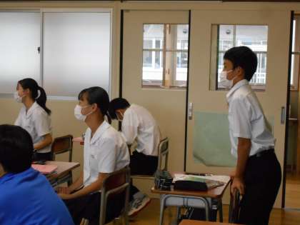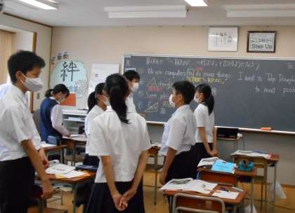 英語の授業では、ペアやグループで夏休みの出来事を伝え合った後、全体の場で発表しました。