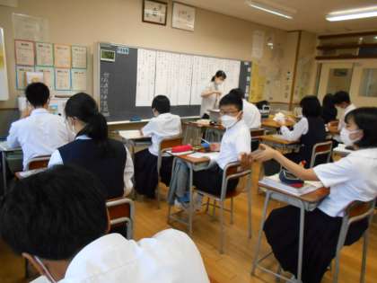 国語の授業では、「あいさつ〜原爆の写真によせて〜」という教材を読み、考えたこと、気付いたことを出し合いました。