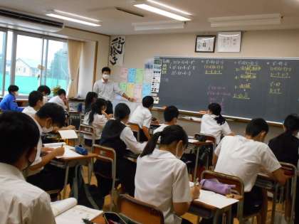 数学の授業では、因数分解の問題に取り組んだクラスもありました。