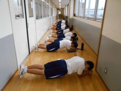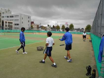 男女ソフトテニス部は、クレーコートが使えたので、コートで練習するグループと、室内でトレーニングをするグループに分かれて活動しました。