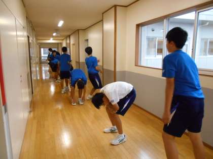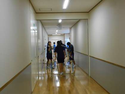陸上競技部は、室内でのトレーニングに切り替えて、活動しました。