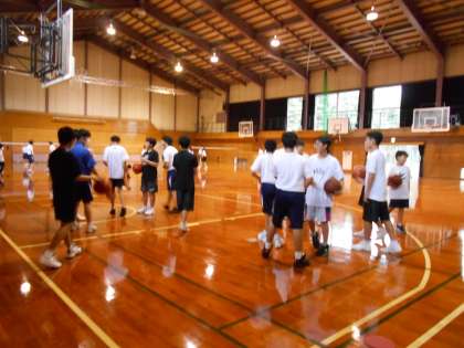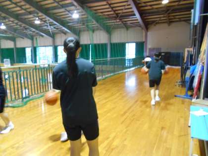 男女バスケットボール部は、今日も男女でコートを使う時間を分けて取り組みました。