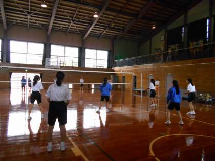 女子保健体育の授業では、バレーボールに取り組んでおり、ボールをつなぐことを意識して取り組みました。