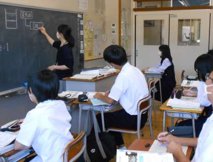 理科の授業では、遺伝の規則性について、丸形としわ形を例に勉強しました。