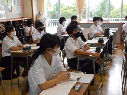 数学の授業では、数量の間の関係を表す勉強をしました。先生の投げかけに気付きがあったとき、「そうだね」と言ってもらい、うれしそうにしている様子が見られました。