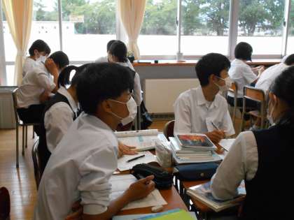 理科の授業では、エンドウ豆の丸形としわ形が3:1になることを確かめました。不思議ですが、データで確認できると、納得できたようです。