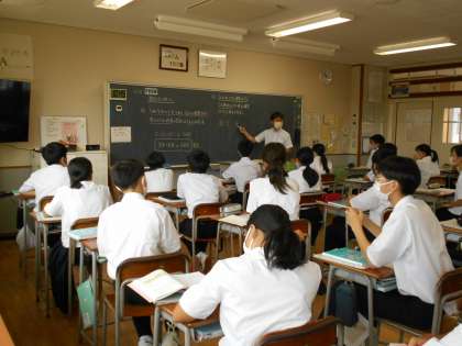 他のクラスの数学の授業でも、文章題を読んで、Xゃaといった文字を使って関係式を作り、答を求めることに取り組みました。みんな理解ができて満足した表情でした。