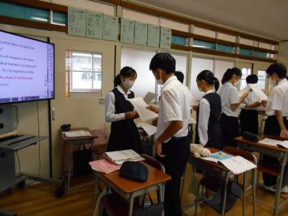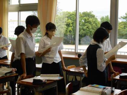 別のクラスの英語の授業でも、SLA SLA(すらすら)Readingに挑戦していました。英語はとにかく声に出して読むことが大切です。家でもどんどん練習しましょう。