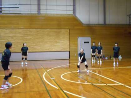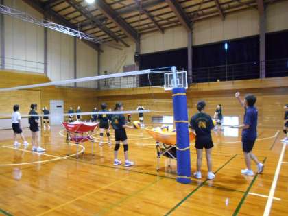 夏休みに練習を繰り返してきたレシーブやサーブを試合で生かせるように、確認していました。