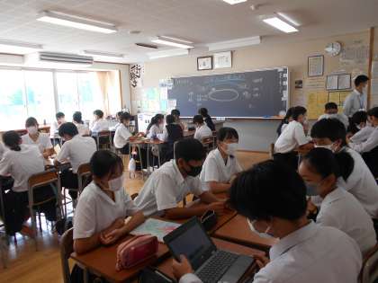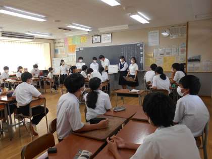昨日、合唱コンクールに向け、各クラスで目標を考えました。全体で意見を出し合ったり、グループで考えあったり、それぞれのクラスで工夫しながら話し合いが進められました。3年生にとっては中学校最後の合唱コンクールです。3年間の集大成として、本気で合唱に取り組もうとしている気持ちが伝わりました。これからの練習が楽しみです。